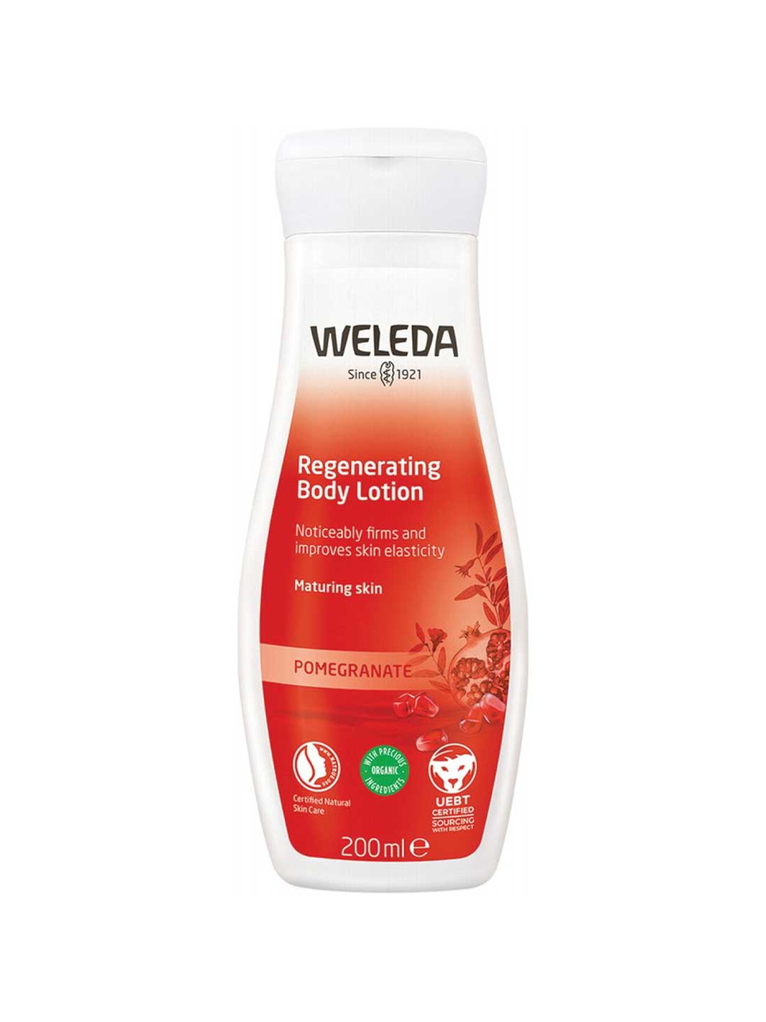 The Weleda Regenerating Body Lotion Pomegranate regenerates and noticeably firms maturing skin with a unique cell-renewing formula. Created with organic antioxidant-rich Pomegranate Seed Oil and lipid-replenishing Shea Butter, this formula regenerates, firms and tones maturing skin while improving elasticity. The easily absorbed, non-sticky and non-greasy formula leaves skin beautifully soft, smooth and radiant with a warm, natural fragrance that inspires the senses. In clinical studies, results showed 39% cell renewal after 4 weeks, 62% confirmed the product noticeably firms skin, and 86% agree skin feels velvety smooth. Made in Germany, certified natural and vegan.