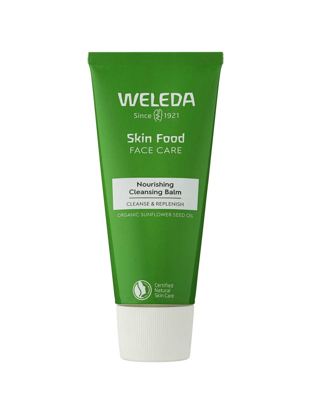 The Weleda Skin Food Face Care Nourishing Cleansing Balm is a certified natural cleansing balm for normal to dry skin, lightly scented in the iconic Skin Food scent. Formulated with nutrient-rich organic sunflower seed oil, it gently melts away makeup and impurities without stripping the skin’s natural oils. The balm-to-milk texture transforms into a soft, milky emulsion on contact with water, cleansing effectively while helping to maintain moisture levels and leaving skin supple, refreshed. Ideal as the first step in a double-cleansing routine. Made in Germany, certified natural and vegan. Free from synthetic preservatives, fragrances, colourants and raw materials from mineral oils.