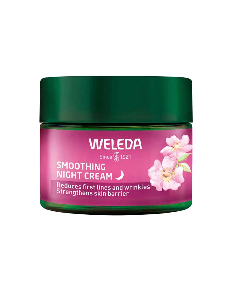 The Weleda Smoothing Night Cream Wild Rose & White Tea targets reduces first lines and wrinkles and strengthens skin barrier using Age Protect Complex featuring Wild Rose and White Tea extracts. This regenerating, nourishing night cream is ideal for skin showing first signs of ageing and is designed to address the first signs of skin ageing in your 30s by smoothing fine lines, renewing radiance and intensively moisturising with nourishing rosehip seed oil. In clinical studies, 94% agree visibly smoother skin, 89% show stronger skin barrier after 8h, and 91% agree skin is recharged. Made in Germany, certified natural, vegan and packaged in glass.