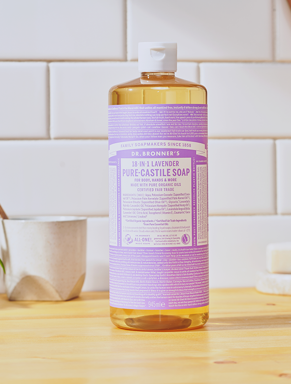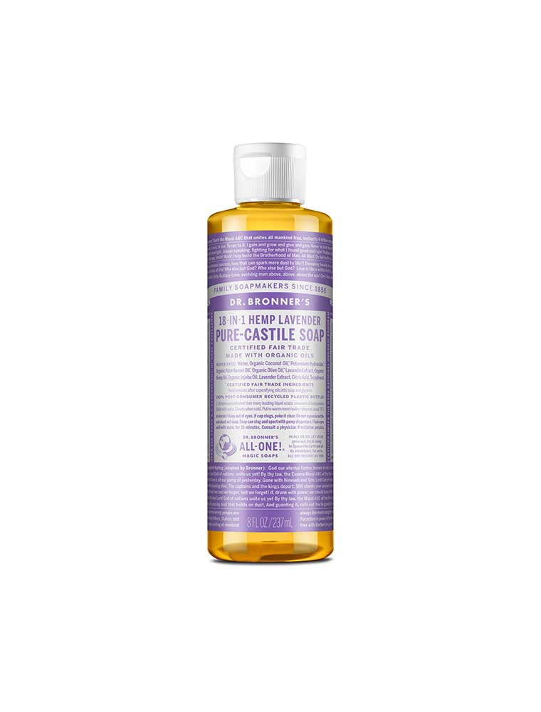 Dr. Bronner’s 18-in-1 Pure-Castile Soaps are multi-surface all-purpose cleaners good for just about any task. Wash face, body, hair, hands! Clean toilets, bathtubs, countertops, dishes—great for laundry, mopping, pets, and aromatherapy—with no synthetic preservatives, detergents or foaming agents—none!