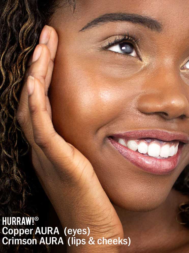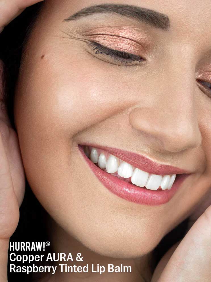 The Hurraw! Copper Aura Balm is a multi-use sheer balm with subtle copper shimmer for eyes, lips and cheek colour. This coconut-based Aura accent balm highlights skin with red and golden notes and can be used on cheeks, brow ridge, collarbones or anywhere you want to add luminosity. Loaded with shimmer, this balm highlights the skin with a silky, feather-light feel that illuminates your natural beauty. Free from mineral oil or petroleum jelly. Made in the USA, vegan and packaged in glass.