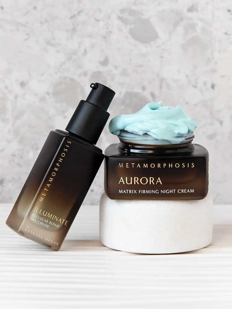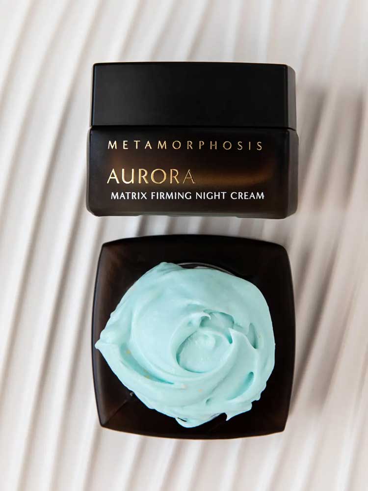The Metamorphosis Aurora Matrix Firming Night Cream is a luxurious anti aging night cream formulated to restore and revitalise the dermal layers while you sleep for visibly firmer, radiant and rejuvenated skin. This velvety and lightweight cream delivers deep hydration and nourishment while promoting collagen production for a more luminous, firm and lifted complexion that radiates vitality every morning. Formulated with Copper Peptides, super critical CO2-extracted CO₂llageneer®, 24k Gold and Pearl Powder to enhance collagen production, illuminate the complexion, reduce the signs of ageing and promote skin firmness. Made in Australia and packaged in glass.