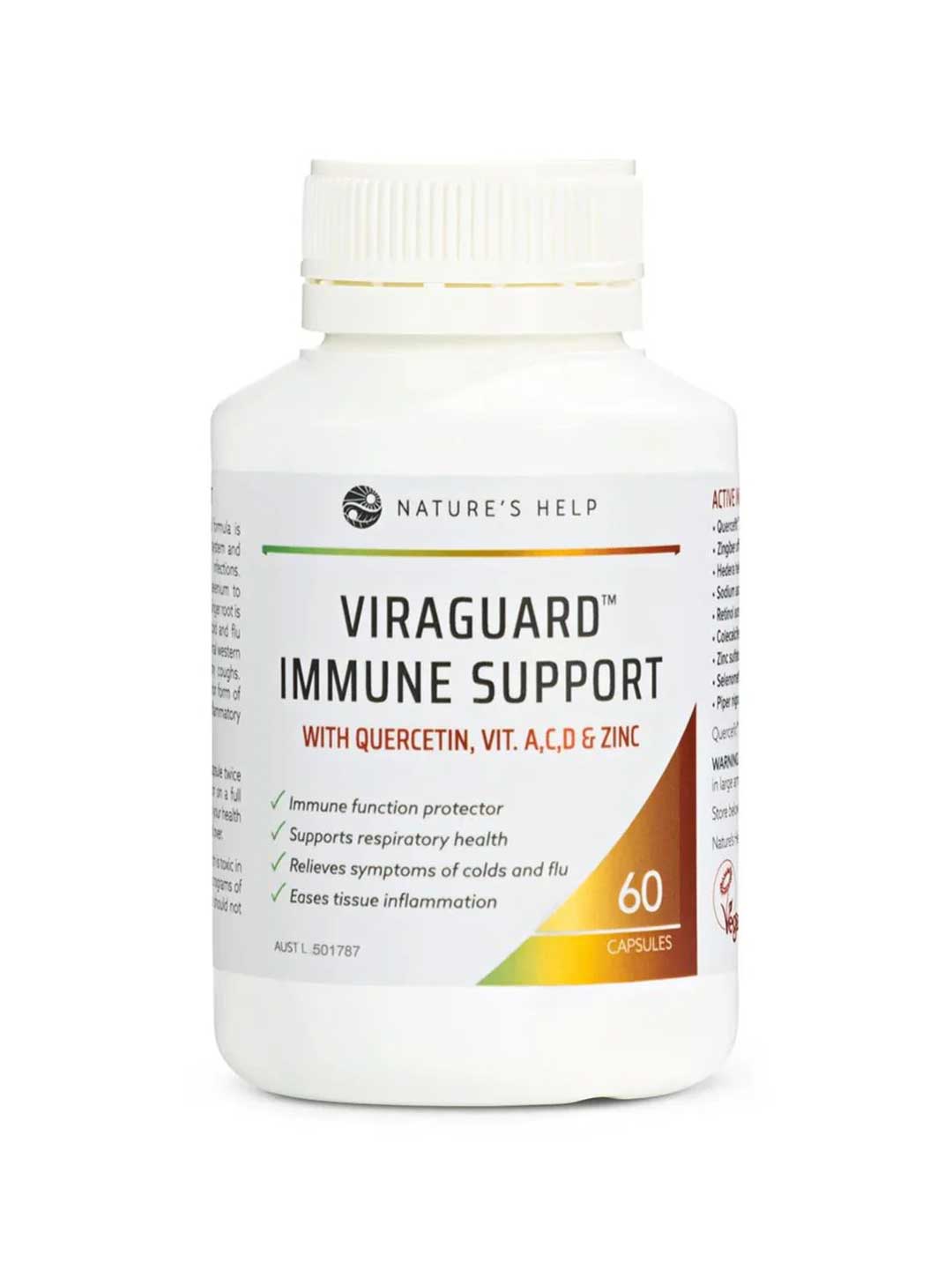 The Nature's Help ViraGuard Immune Support combines Quercefit quercetin with key vitamins and minerals including A, C, D, zinc, and selenium to help maintain healthy immune function and provide powerful immune support for overall wellbeing. Quercefit is a highly bioavailable form of quercetin, designed to deliver more of this plant-based flavonoid into the bloodstream than standard quercetin, enhancing its antioxidant benefits. Acts as immune function protector, supports respiratory health, relieves cold and flu symptoms, eases tissue inflammation, reduces free radical damage, and relieves dry unproductive cough. Made with patented LipiSperse technology, Quercefit blends quercetin with sunflower seed lecithin to improve absorption and stability. Traditionally used in Western herbal medicine to support healthy immune system function, help protect the body from free radical damage, and support general health and vitality. Made in Australia, vegan, gluten-free, and free from synthetic colours and preservatives. TGA Listed (AUST L 377457). ALWAYS READ THE LABEL AND USE ONLY AS DIRECTED. If symptoms persist, talk to your health professional.