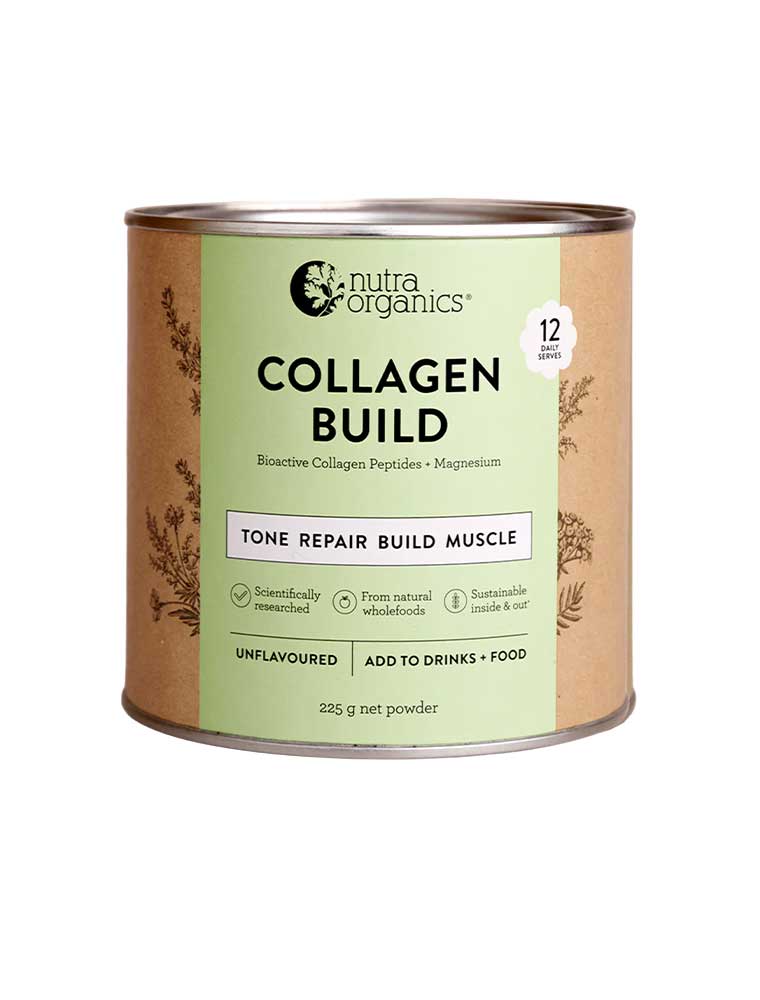 The Nutra Organics Collagen Build is a natural body toning and strength formulation designed for active individuals wanting to tone, build lean muscle. Featuring BODYBALANCE® Bioactive Collagen Peptides and 100% RDI of magnesium from arctic sea salt, this supplement supports muscle building and function. With 95% protein content, it provides essential amino acids for muscle building, toning, strengthening, and recovery. Collagen begins to degenerate from our mid-20s, leading to loss of muscle mass as protein breaks down due to aging and lifestyle factors. This unflavoured, versatile powder can be added to coffee, tea, smoothies, soups, and baking, making it an easy addition to your daily routine. For best results, use alongside a healthy diet and exercise regime that includes 2-3 hours of resistance training weekly.