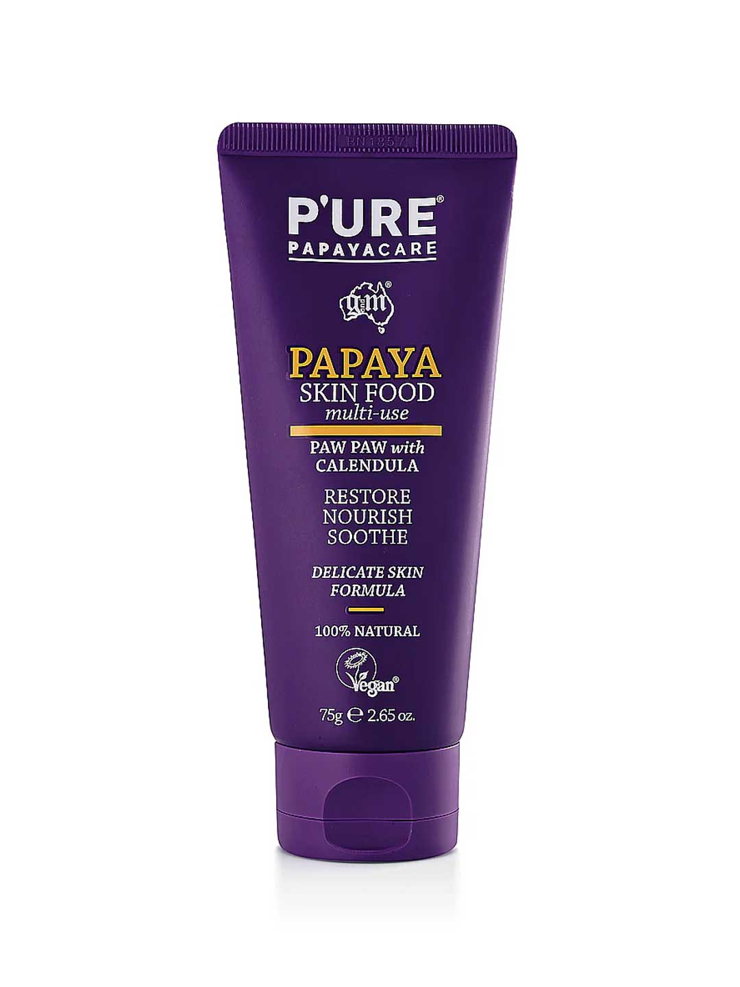 The P’URE Papayacare Papaya Skin Food is an ultra-rich, multi-use balm designed to nourish, soothe and protect dry, cracked and irritated skin. Powered by a natural blend of papaya, shea butter, calendula and macadamia oil, it delivers instant comfort while helping restore the skin barrier.