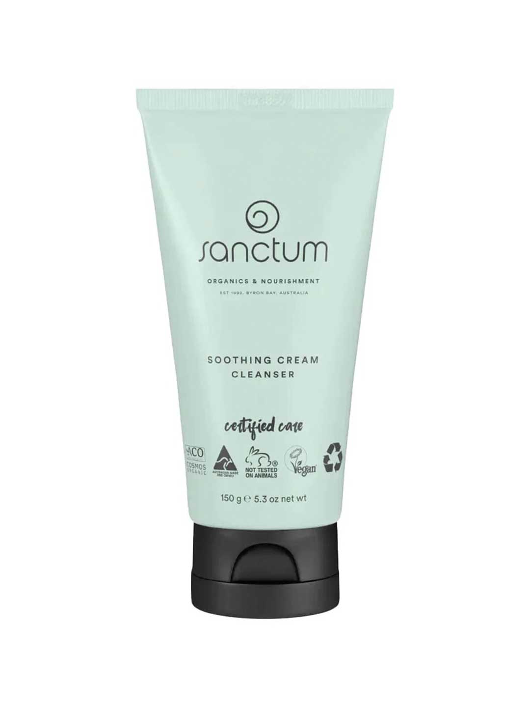 The Sanctum Soothing Cream Cleanser is a rich cleansing cream infused with Certified Organic Petitgrain Essential Oil, Aloe Vera Leaf Juice and Chamomile Flower Extract that effectively washes away daily residue, makeup and excess oil.