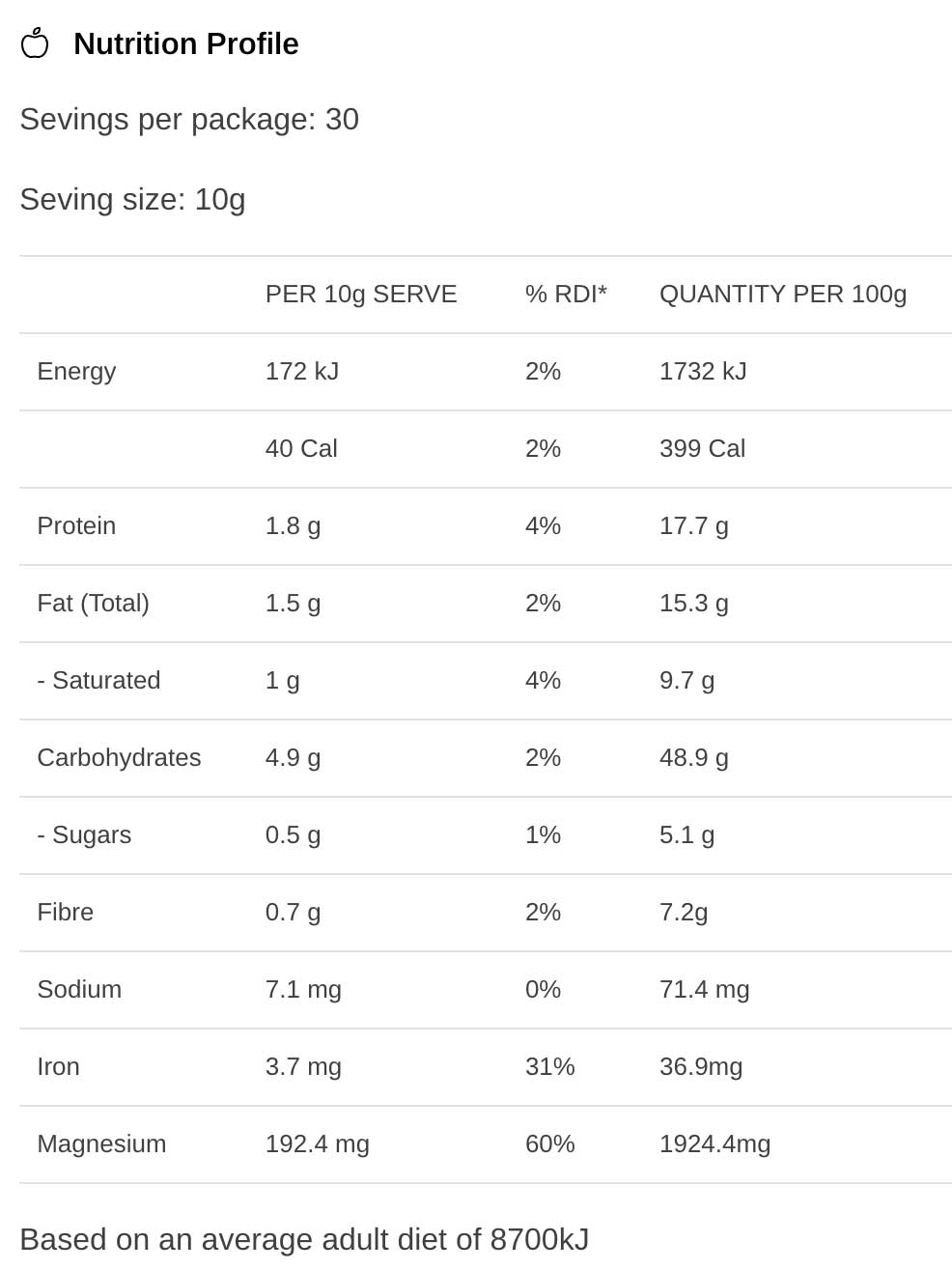 Enjoy 1-2 serves a day (1 serve = 1 heaped tablespoon or 10g).