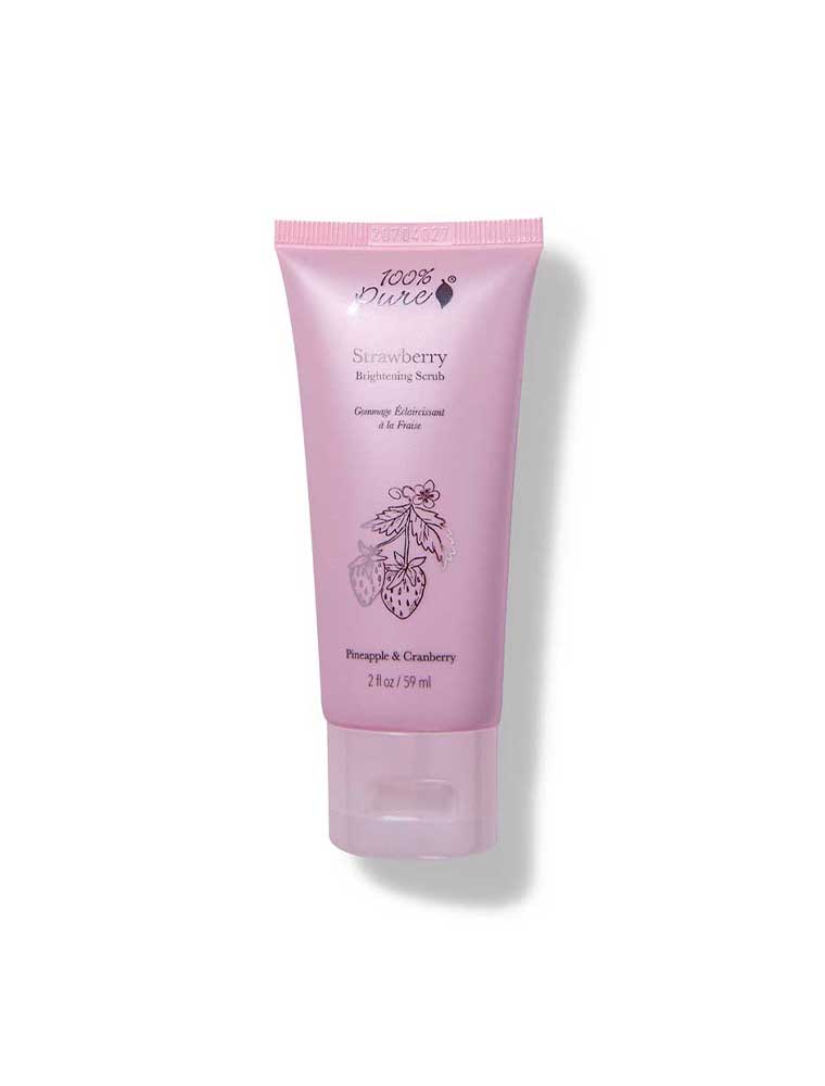 The 100% Pure Strawberry Brightening Scrub is a brightening facial exfoliator made with a combination natural fruit acids and physical fruit seeds which work together to brighten and smooth the complexion. This advanced formula includes Strawberry, Grape, and Cranberry Seeds plus acids Pineapple, Papaya and Lemon to slough away dead skin cells, congestion and rough patches to promote a smoother, brighter complexion. Made in the USA and vegan.